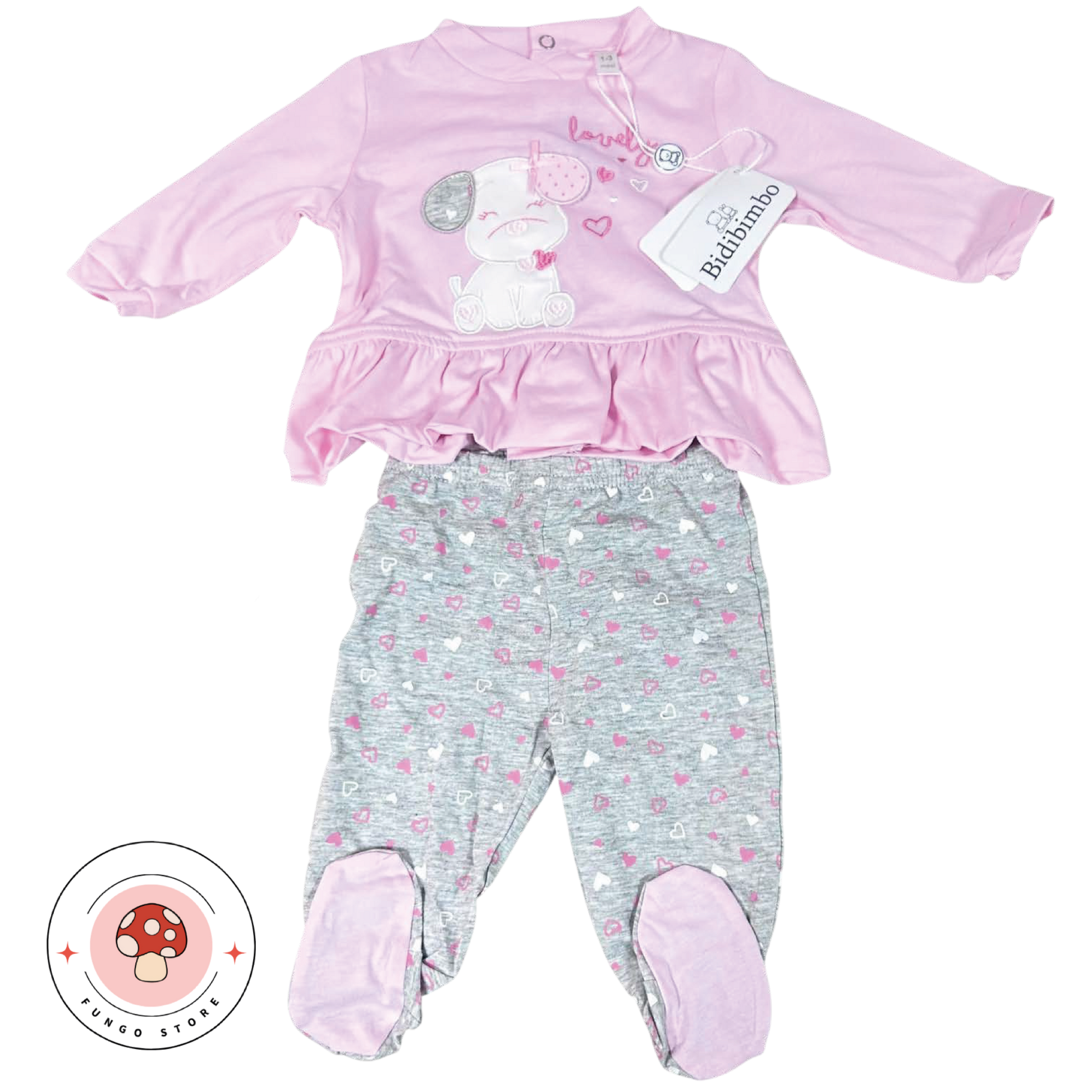 Completo Neonata 2 Pezzi – Rosa Dolce con Cuoricini