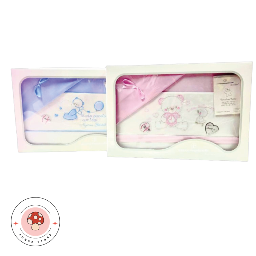 Il tocco perfetto per il lettino del tuo bebè! Questo set lenzuolino unisce dolcezza e qualità, perfetto anche come idea regalo.